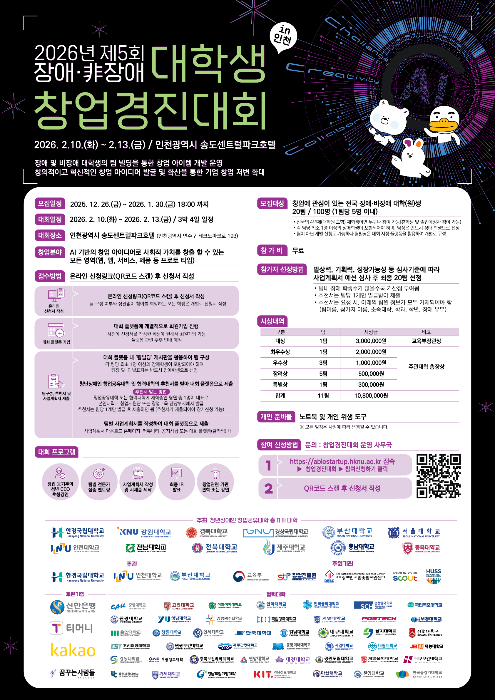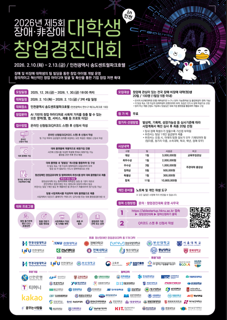 1. 행사명 : 2026년 제 5회 전국 장애·非장애 대학(원)생 창업경진대회