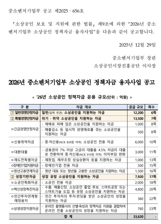 2026년+중소벤처기업부+소상공인+정책자금+융자사업+공고(중소벤처기업부+공고+제2025-656호).pdf