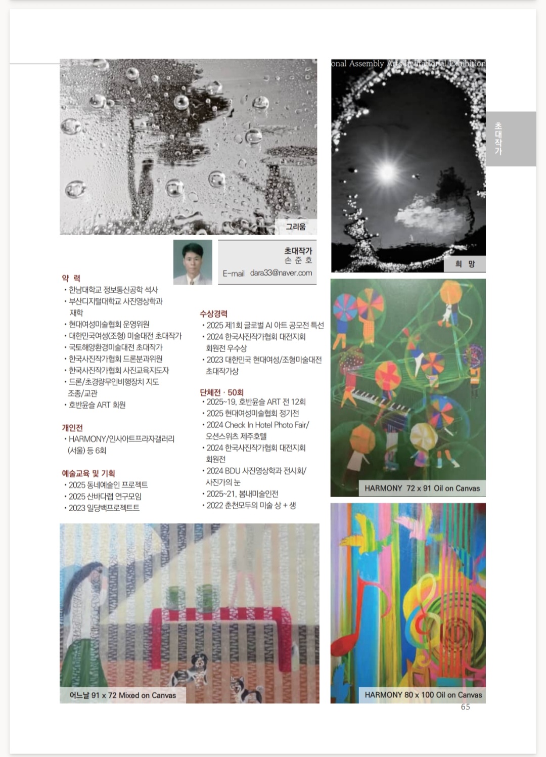 손준호학우가 2025 국회 예술초대작가전에 초대작가로 선정되어 작품집이 출간되었습니다.